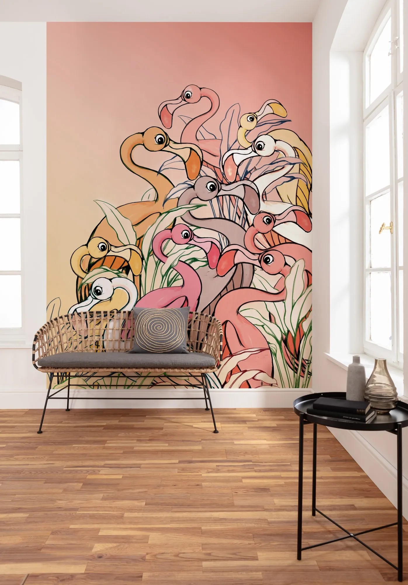 Komar Vliesová fototapeta Flamingos and Lillys 200 x 280 cm