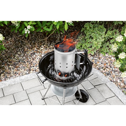 Štartér má veľký plniaci objem cca 3,6 l, čo zodpovedá cca 1,3-1,8 kg dreveného uhlia. Je vyrobený z odolnej ocele s hrúbkou 0,6 mm a vybavený bezpečnostnou rukoväťou z plastu, ktorá sa tak rýchlo nenahrieva ako zvyšok štartéra. Rukoväť umožňuje ľahké plnenie a vyprázdňovanie a spoločne s tepelným štítom vás spoľahlivo ochráni pred horúčavou a odletujúcimi iskrami.