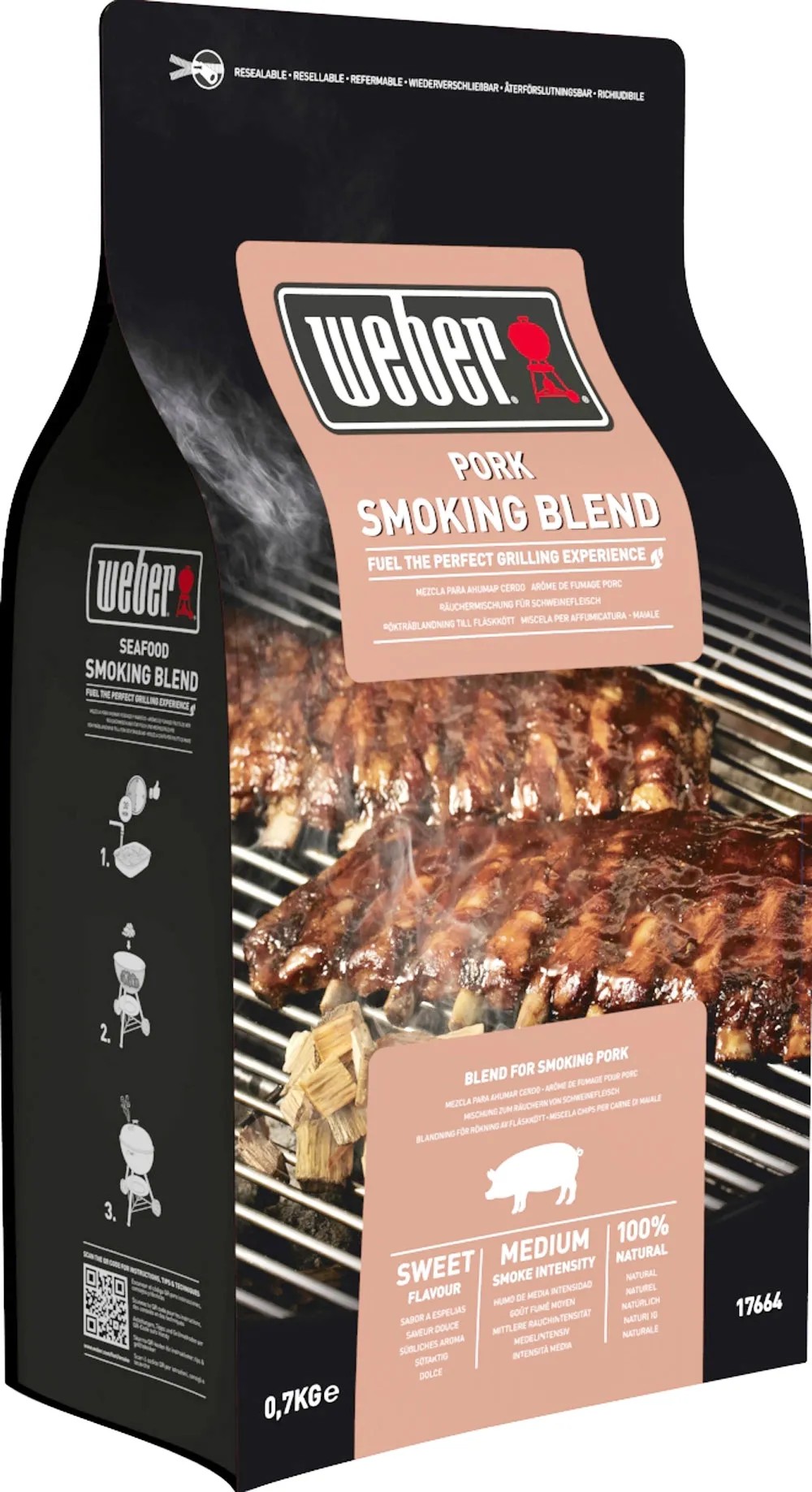 Weber štiepky na údenie bravčového mäsa sú špeciálnou zmesou z dreva listnatých a ovocných stromov, ktorá zaručí sladkú arómu a strednú intenzitu dymu pre všetky jedlá z bravčového mäsa. Sú ideálne vhodné napr. na bravčové rebierka, trhané bravčové alebo kotlety.