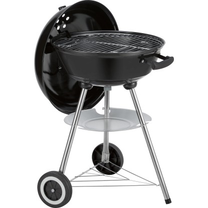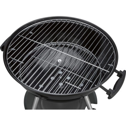 Kotlový gril na drevené uhlie je ideálny pomocník pri grilovaní na záhrade alebo terase. Kupolovité veko umožní priame aj nepriame grilovanie. Gril je vybavený chrómovanou mriežkou s priemerom 43,8 cm. V ráme je umiestnená odnímateľná polica na grilovacie náčinie. Kryt je možné v prípade potreby úplne sňať. Má tiež nastaviteľný ventilačný otvor, ktorý je užitočný na reguláciu teploty grilovacej komory. Gril má dve veľké kolieska pre ľahké premiestnenie. Rozmery (V x Š x H): 85 x 55 x 52 cm