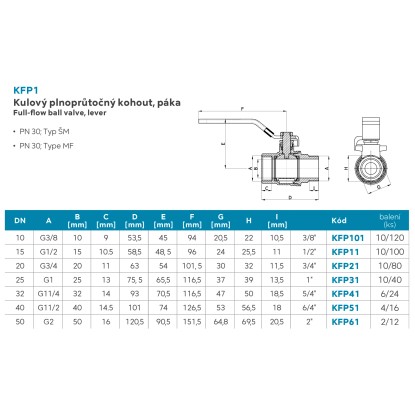 Ferro Guľový plnoprietočný kohút KFP31, páka ŠM 1"