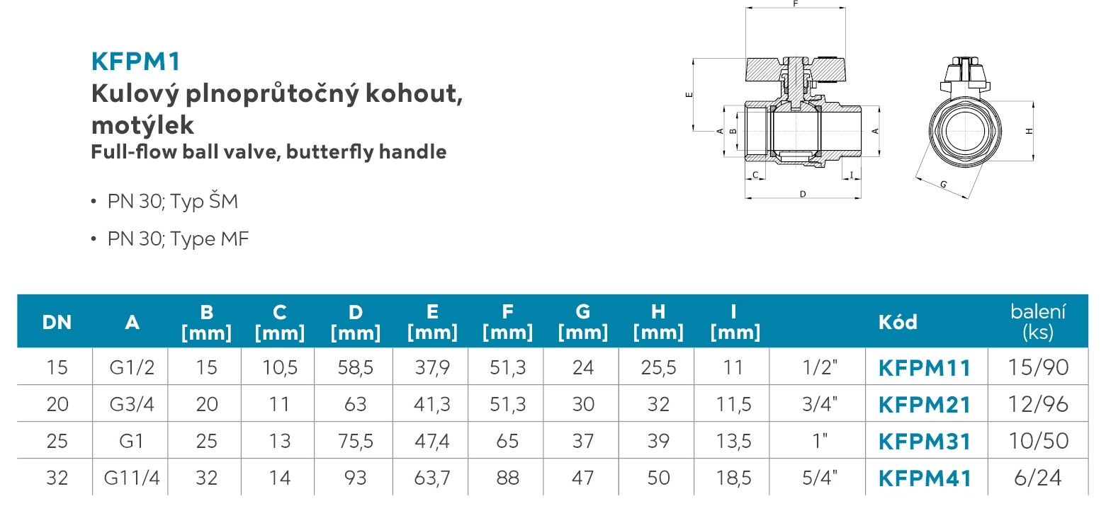 Ferro Guľový plnoprietočný kohút KFPM21, motýlik ŠM 3/4"