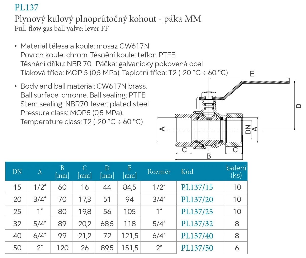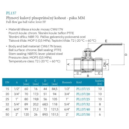 Ferro Plynový guľový kohút MM RP 3/4" (KGN2)
