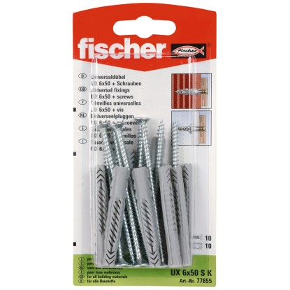 Fischer Univerzálna hmoždinka UX 6 x 50 S K NV so skrutkami, 10 ks