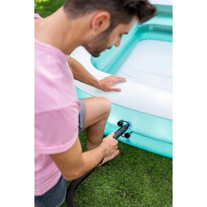 Ak je sacia hadica pripojená pomocou funkcie fúkača, prístroj bez námahy nafúkne nafukovacie matrace, bazény a plavecké pomôcky alebo dokonca nafukovacie člny. Po pripojení sacej hadice k sacej prípojke prístroja sa vzduch automaticky vysaje, takže zdĺhavé manuálne vytláčanie vzduchu je už minulosťou.