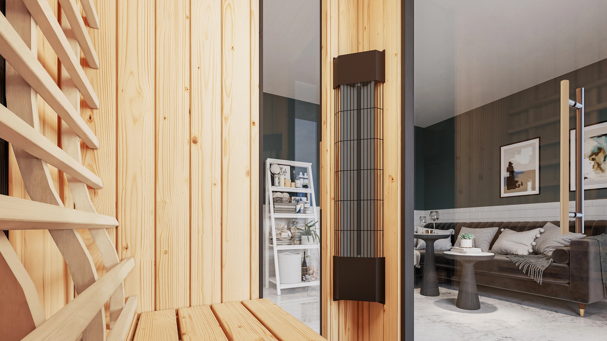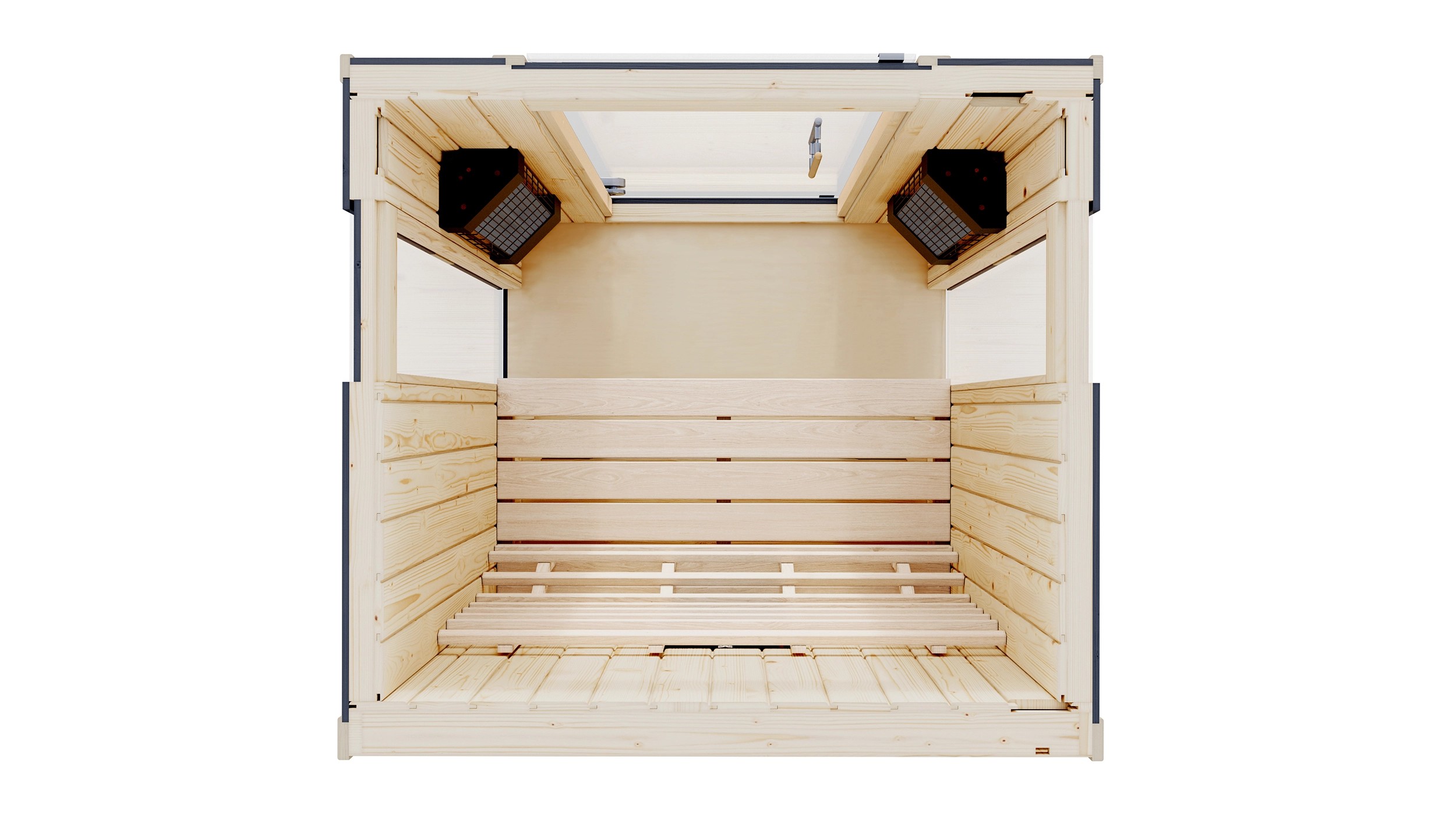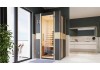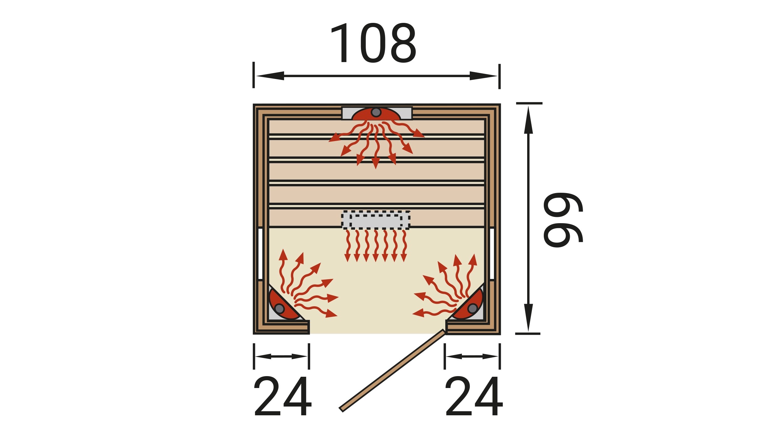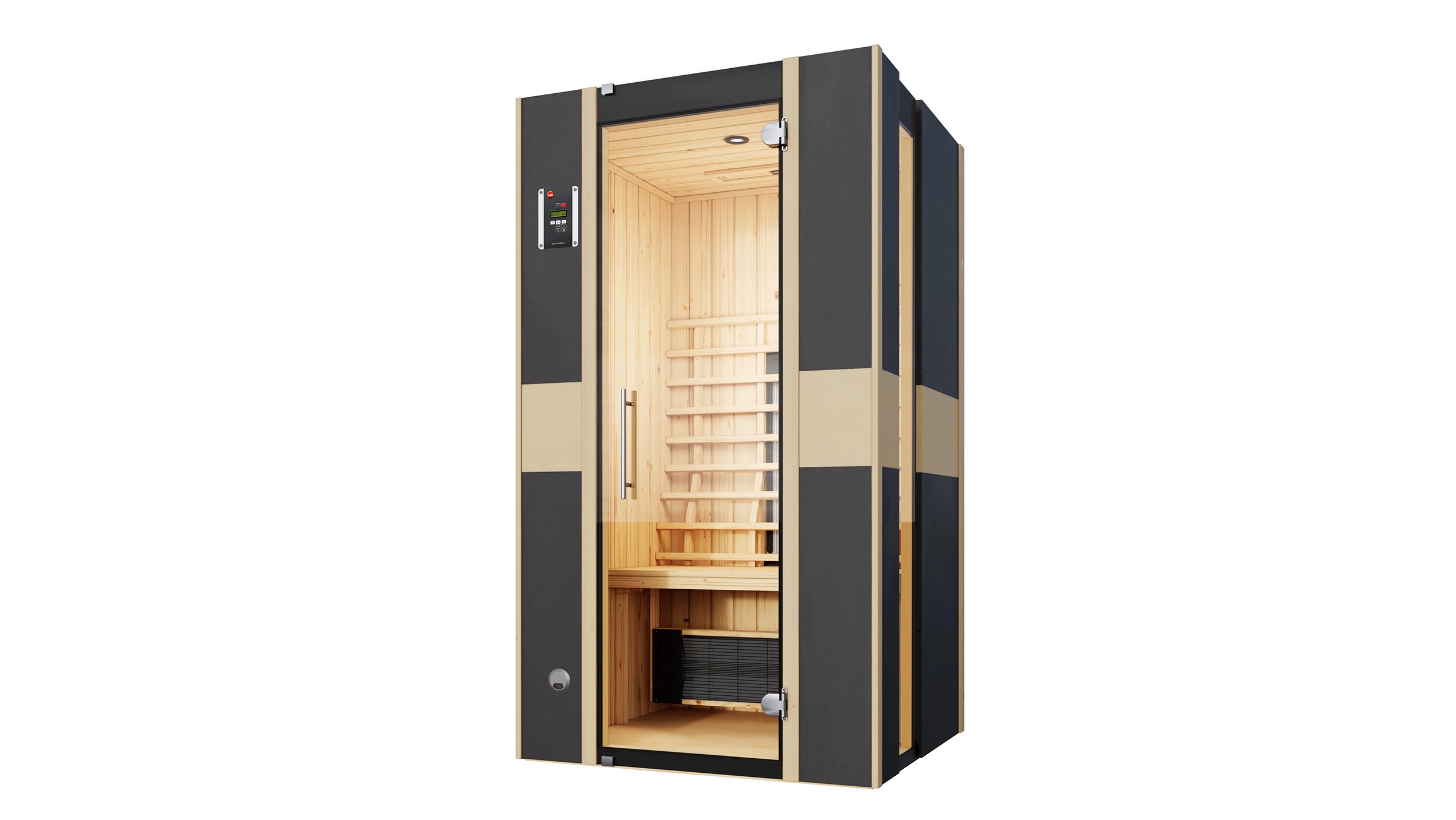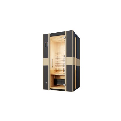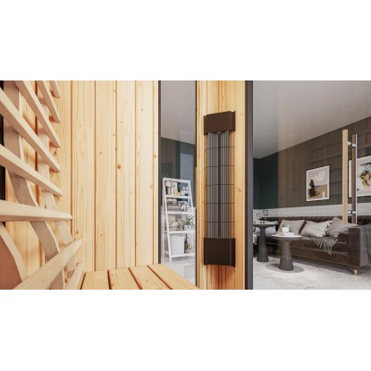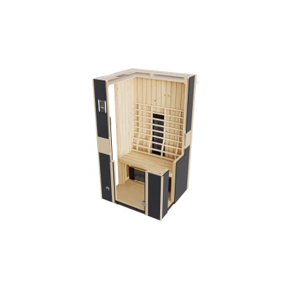 Infračervená kabína je po celom obvode vybavená jemnými keramickými žiaričmi, ktoré sa vyznačujú veľmi dobrou znášanlivosťou. Prefabrikované prvky sa postarajú o rýchlu a jednoduchú montáž infračervenej kabíny. Vhodná podlaha, digitálna riadiaca jednotka a integrované halogénové bodové svietidlo sú súčasťou dodávky a zabezpečujú potrebný komfort. Vonkajšia strana infračervenej kabíny je vyhotovená s bridlicovým vzhľadom a vyzdobená ukončovacími lištami z lipového dreva, a tak sa táto kabína môže pochváliť veľmi moderným vzhľadom. Kabína sa dodáva vrátane veľkých celosklenených dverí a 2 okenných prvkov s grafitovým vzhľadom. Stabilná lavička s hĺbkou 45 cm a vhodné operadlo vytvárajú útulnú atmosféru. Veľkosť a poloha sedenia v infračervenej tepelnej kabíne sú optimálne prispôsobené orientácii a výkonu infračervených žiaričov a zabezpečujú perfektné rozdelenie tepla v kabíne.
