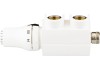 Pripojovacia armatúra pre kúpeľňový radiátor so stredovou prípojkou. Rohové prevedenie. Vr. termostatické hlavice a krytu.