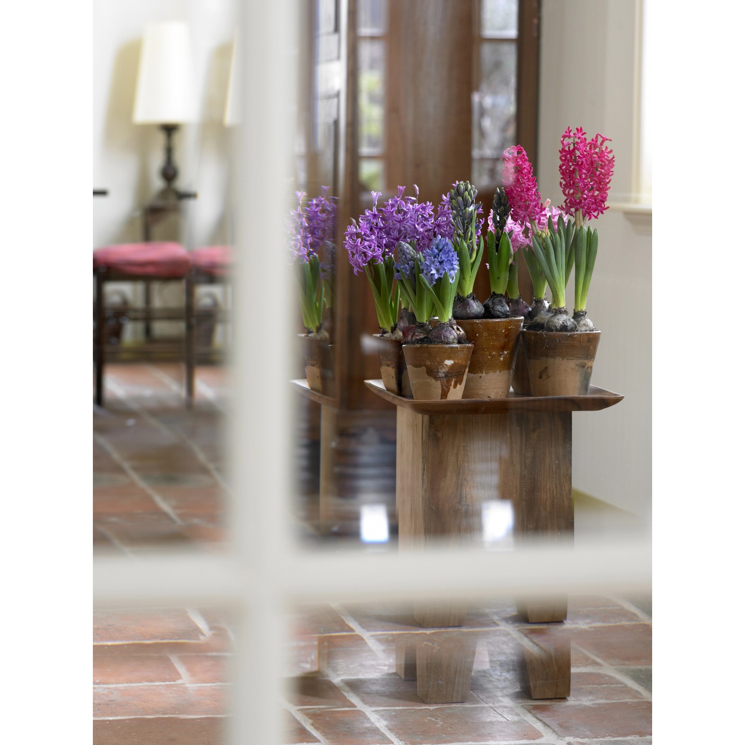 Hyacint východný "Jan Bos" (Hyacinthus orientalis) je cibuľovitá rastlina, ktorá šíri svoj nostalgicko-elegantný nádych. Po odkvitnutí červených kvetov ju môžete presadiť do záhrady. Tam na budúci rok znova zakvitne. Optimálne sa mu darí na chladnom a svetlom mieste v interiéri, ako aj v exteriéri, čo zaručí dlhé kvitnutie. Počas obdobia kvitnutia majú cibuľovité rastliny vysokú potrebu vody. Rastlinu preto nenechávajte vyschnúť, súčasne však bezpodmienečne zabráňte zamokreniu. V exteriéri chráňte predpestované rastliny pred mrazom.