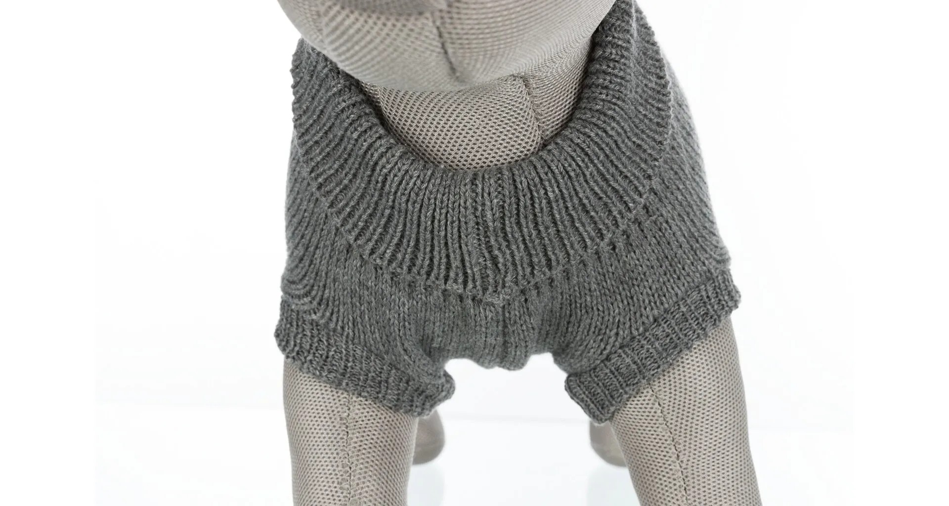 Svetrík zo syntetickej bavlny s pútkami na zadné nohy. Možno prať v práčke na 30 stupňov. Možno použiť ako zateplenie pod pláštenku.