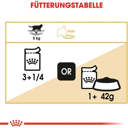 Aby sa mohli uspokojiť chute čo najviac mačiek, krmivo Royal Canin Maine Coon Adult je dostupné aj ako suché krmivo s chrumkavými a chutnými granulami. Ak premýšľate nad kombinovaným kŕmením, jednoducho sa riaďte našimi pokynmi, aby vaša mačka dostávala to správne množstvo suchého aj vlhkého krmiva.
