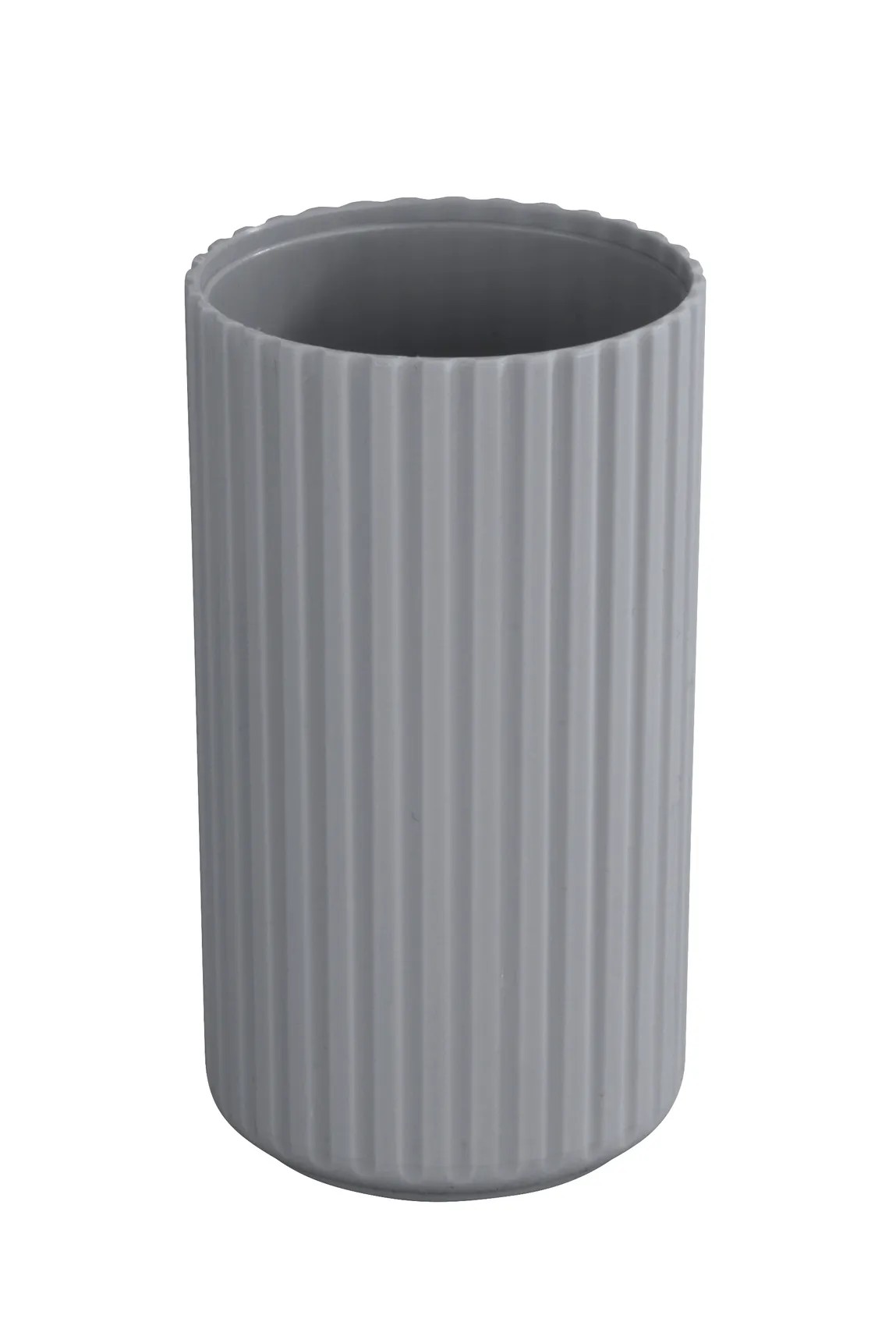Vkusná kúpeľňová séria Minas má elegantný ryhovaný dizajn a prináša množstvo trendu a štýlu do vašej kúpeľne. Všetky doplnky tejto atraktívnej série sú vyrobené z kvalitného plastu (PP). Pohár na zubné kefky Minas v modernej sivej farbe nielen zvýši vizuálnu hodnotu kúpeľne, ale poskytuje aj miesto na zubné kefky a zubnú pastu a uchováva ich dekoratívne poruke. Radi po ňom siahnu aj ľudia, ktorí veľmi neobľubujú upratovanie. Čo tak vlastný pohár pre každého rodinného príslušníka? Pohár na zubné kefky sa dá mimoriadne dobre doplniť o množstvo ďalších doplnkov z kúpeľňovej série Minas. Doprajte svojej kúpeľni úplne nový vzhľad s dávkovačom mydla, košíkom do sprchy a odpadkovým košom s výkyvným vekom alebo WC súpravou a miskou na mydlo Minas. Materiál: polypropylén Farba: sivá Rozmery (Š x V x H): 12 cm x 7 cm Hmotnosť netto: 78 g