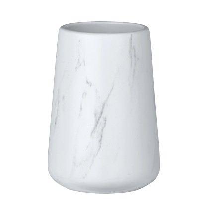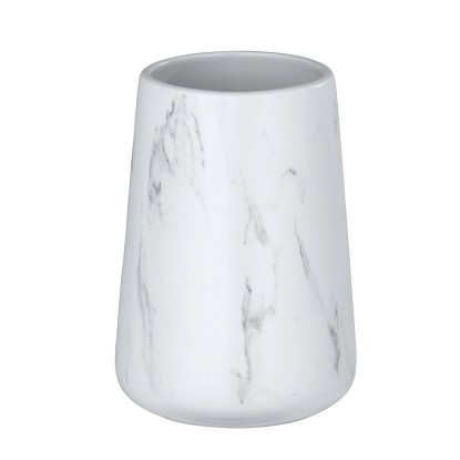 Elegantný pohár na zubné kefky zo série kúpeľňových doplnkov Adrada je vyrobený z vysokokvalitnej keramiky. Špeciálny mramorový dizajn dodá každej kúpeľni mimoriadnu atmosféru, ktorá pritiahne všetky pohľady. V štýlovom pohári na zubné kefky Adrada nájdu vaše zubné kefky a zubná pasta bezpečné a moderné miesto v každej kúpeľni a sú rýchlo poruke. Čo tak vlastný pohár pre každého rodinného príslušníka? K praktickému poháru na zubné kefky značky Wenko je k dispozícii aj vhodný dávkovač mydla, miska na mydlo a WC súprava.