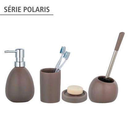 Séria kúpeľňových doplnkov Polaris od spoločnosti Wenko sa vyznačuje modernými tvarmi, kvalitnou keramikou a jemným matným povrchom. Všetky doplnky tejto krásnej kúpeľňovej série dodávajú kúpeľni decentnú eleganciu. Téglik na zubné kefky Polaris v sivo-hnedej farbe ponúka dekoratívne miesto pre zubné kefky a zubnú pastu, ktoré sú k dispozícii na požadovanom mieste. Vzhľadom na jednoduché čistenie, osloví aj ľudí, ktorí nemajú radi upratovanie. Čo tak téglik pre každého člena rodiny? Okrem téglika má séria Polaris vo svojom sortimente tiež zodpovedajúcu toaletnú sadu, odkladač na mydlo a dávkovač mydla.