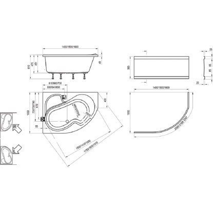 RAVAK Asymetrická rohová vaňa ROSA I 150x105 Ľ, snehovo biela