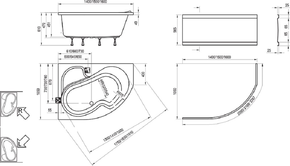 - doplnky na dokúpenie: podpora, čelný panel, vaňový odtokový komplet, vaňová stojanková batéria "vodopád" RS 025