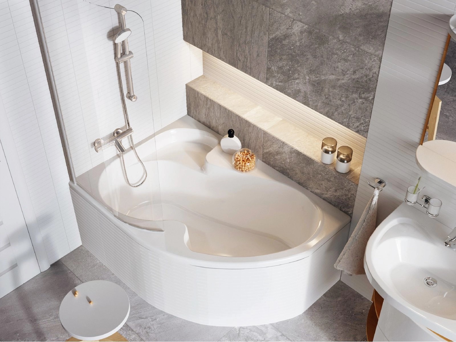 ROSA I je variabilná vaňa, ktorá vám dá všetko, čo potrebujete. Pohodlné kúpanie. Pohodlné sedenie. A tiež pohodlné sprchovanie - stačí k nej pridať našu vaňovú zástenu.