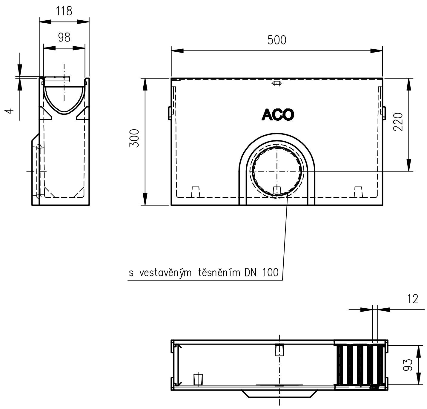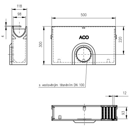 ACO Odtoková vpusť Self Euroline vr. kalového koša, pozink.mostíkový rošt, 0,5 m