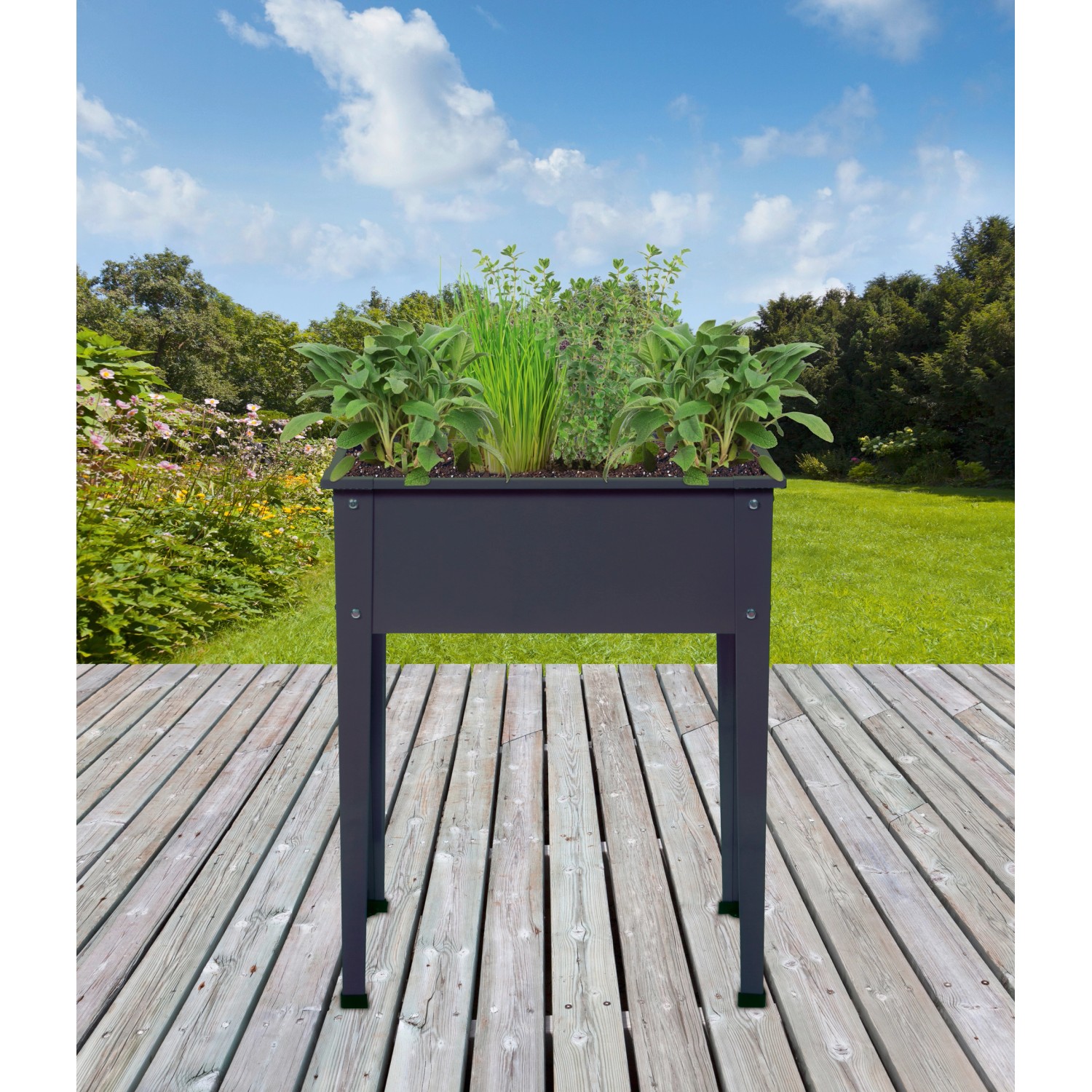 Floraworld vyvýšený záhon Season je vyrobený zo stabilného práškovo lakovaného oceľového plechu a má zosilnené rohy. Plastové krytky na nožičkách slúžia na ochranu podkladu. Vrátane uzatvárateľného otvoru na odtekanie vody, aby sa zabránilo premokreniu. Vyvýšený záhon je ideálny na vysadenie bylinkami, kvetmi, šalátom, zeleninou atď.