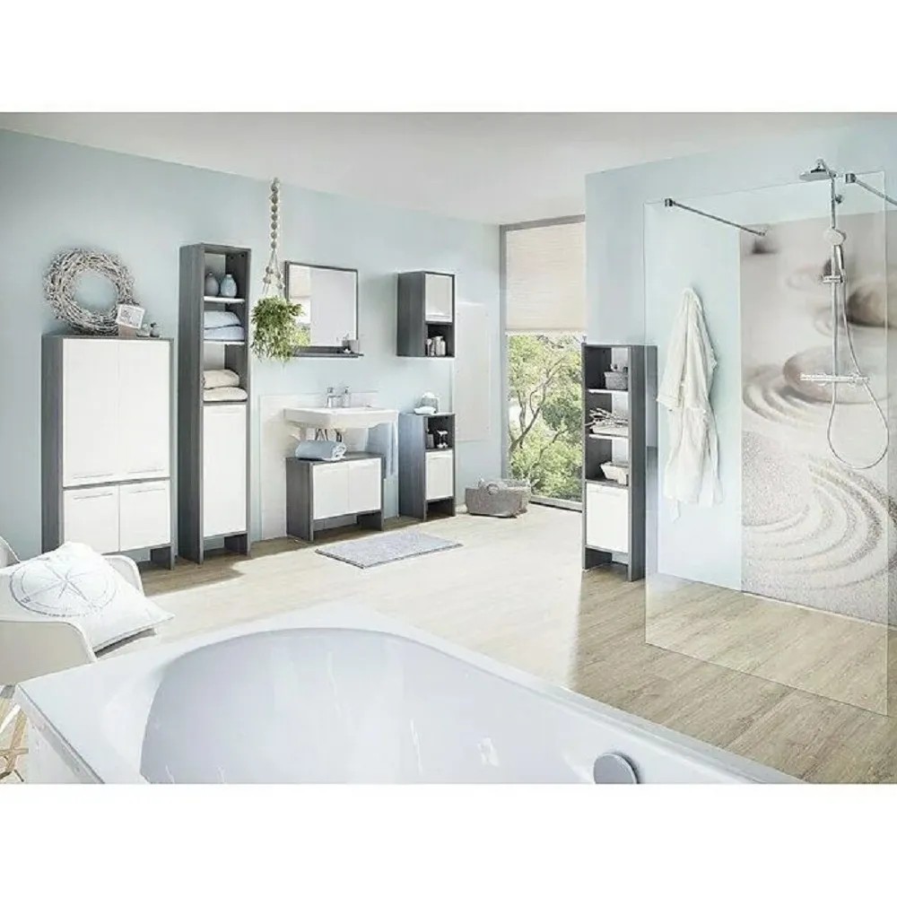 Astor Závesná kúpeľňová skrinka Oslo, biela/sivá, 33 x 28 x 68 cm