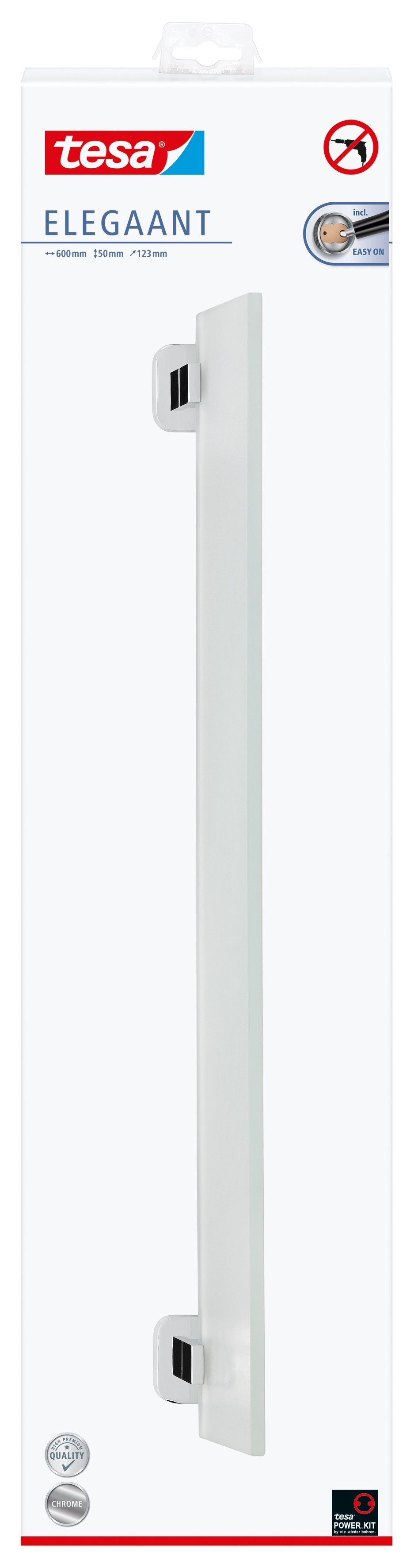 Kúpeľňové predmety Tesa zo série Elegaant sú skutočným obohatením každej kúpeľne alebo toalety pre hostí a zaujmú kombináciou skvelého vzhľadu a funkčnosti. A čo viac, praktické kúpeľňové predmety sú nerezové. Sklenená polička Tesa Elegaant z matného skla ponúka množstvo miesta pre vaše kúpeľňové náčinie a kozmetiku a navyše skvele vyzerá.