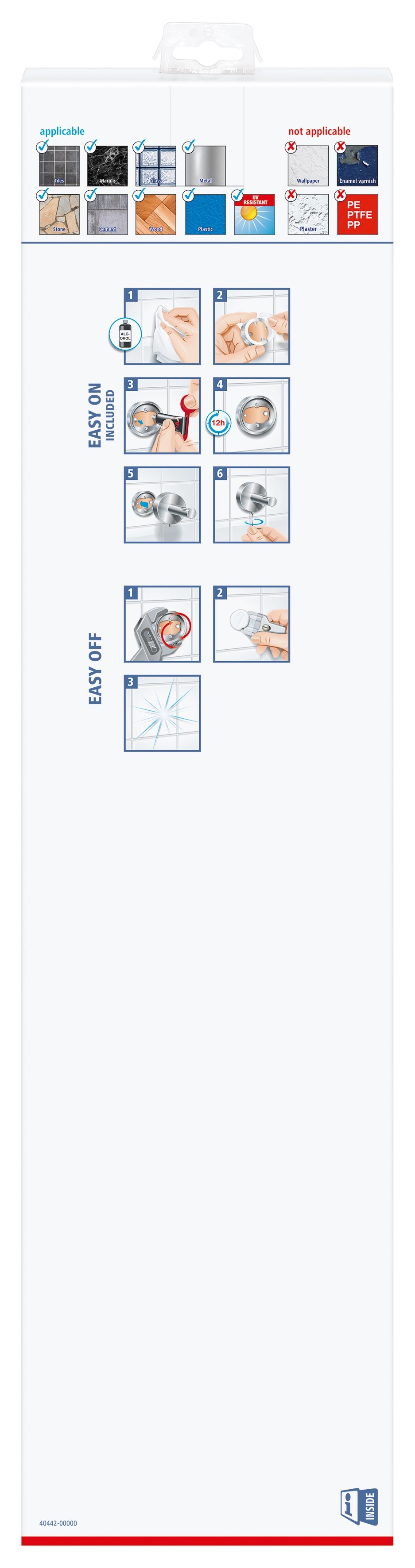 Predmet je možné ľahko a čisto pripevniť na stenu bez vŕtania alebo skrutkovania. Potom, čo nasadíte montážny adaptér a naplníte ho lepidlom, ktoré je súčasťou dodávky, počkajte 12 hodín a potom môžete položku bezpečne pripevniť natrvalo. Priložená upevňovacia súprava obsahuje upevňovací adaptér, lepidlo a imbusový kľúč pre fixáciu. Predmet je vhodný na pripevnenie na dlaždice, kov, prírodný kameň, mramor, sklo, drevo a mnoho plastov. Aj napriek prídržnej sile až 12 kg ho môžete kedykoľvek vybrať a znovu použiť s novým adaptérom (BK20-2).