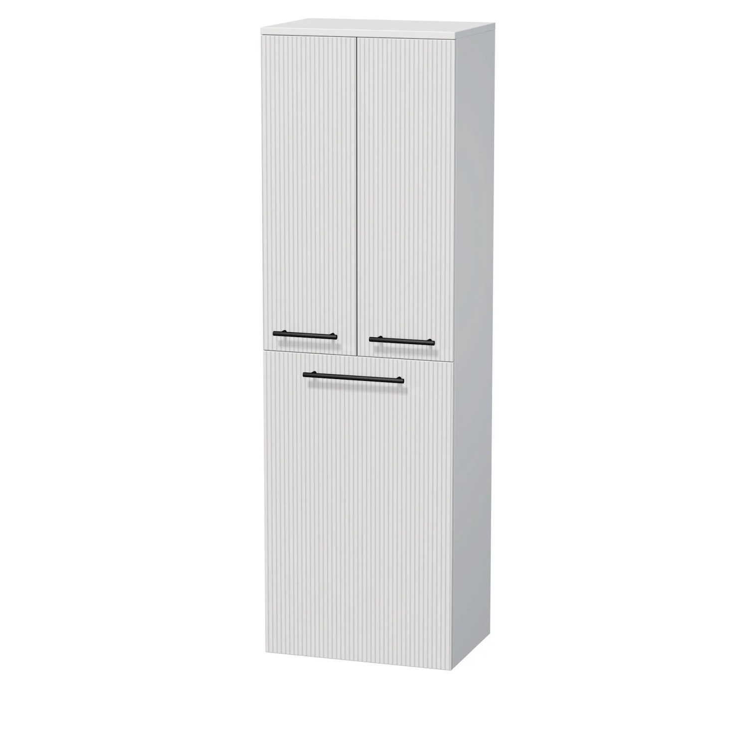 INTEDOOR Vysoká skriňa BEE, úchyt čierny, 2 dvere, kôš, š. 50 cm, biela 3D pruhy