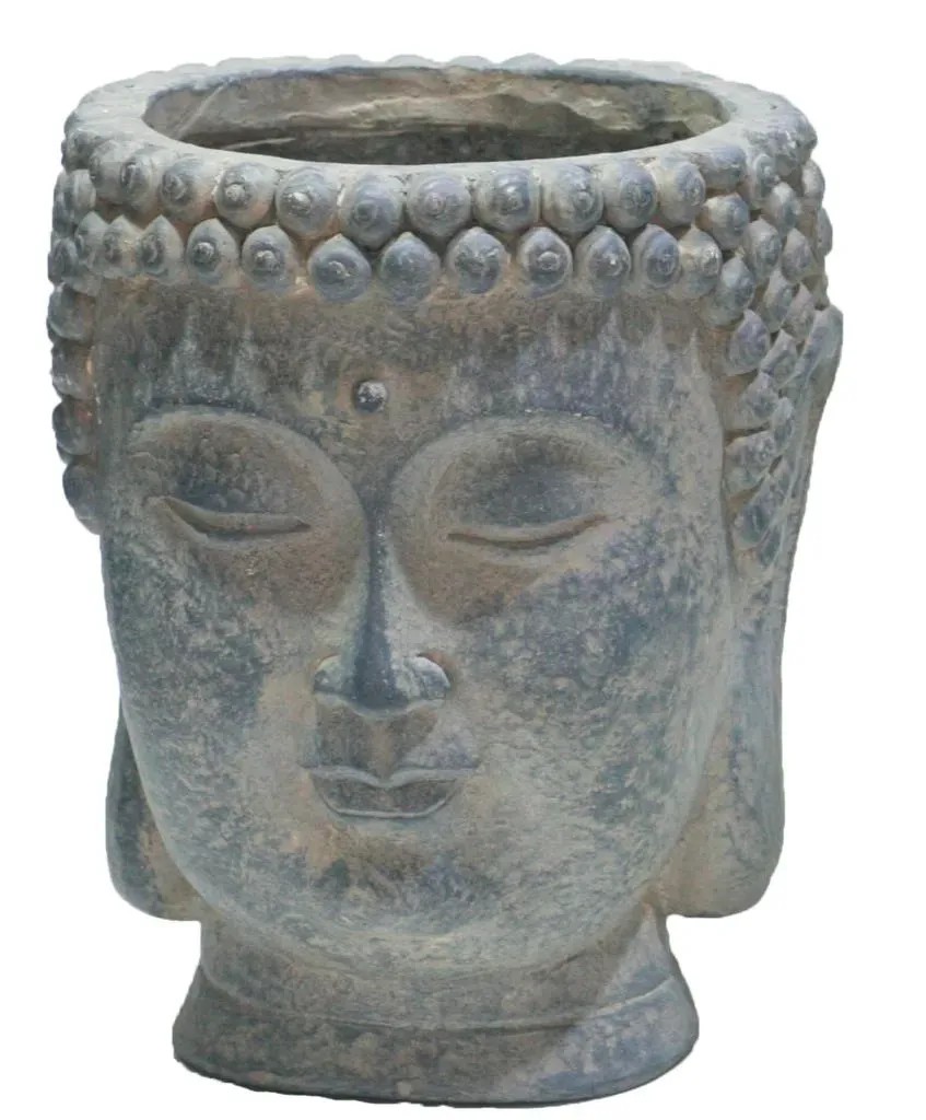 Keramický kvetináč hlava Budhu sivá 23 cm