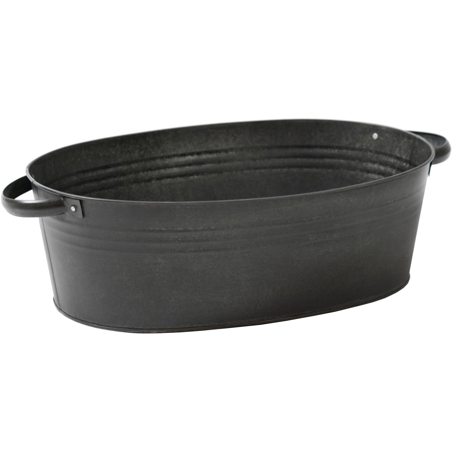 Mega Collections Zinkový kvetináč s madlami Oval Low Vint.Black 43 x 30 x 14 cm