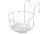 Biely OBI Living Garden držiak kvetináča má priemer 18 cm a ľahko a pohodlne sa dá zavesiť na zábradlie pomocou 2 strmeňov. Tento OBI držiak kvetináča bez predmontáže je preto súčasne dekoratívny a praktický. Držiak kvetináča sa hodí pre kvetináče s horným priemerom max. 16,5 cm a spodným priemerom max. 10,5 cm. Držiak kvetináča je vyrobený z práškovo lakovanej ocele, nepodlieha korózii, a preto sa hodí k celoročnému použitiu v exteriéri. Súčasťou dodávky je miska pod kvetináč. Zaťažiteľnosť činí 10 kg.