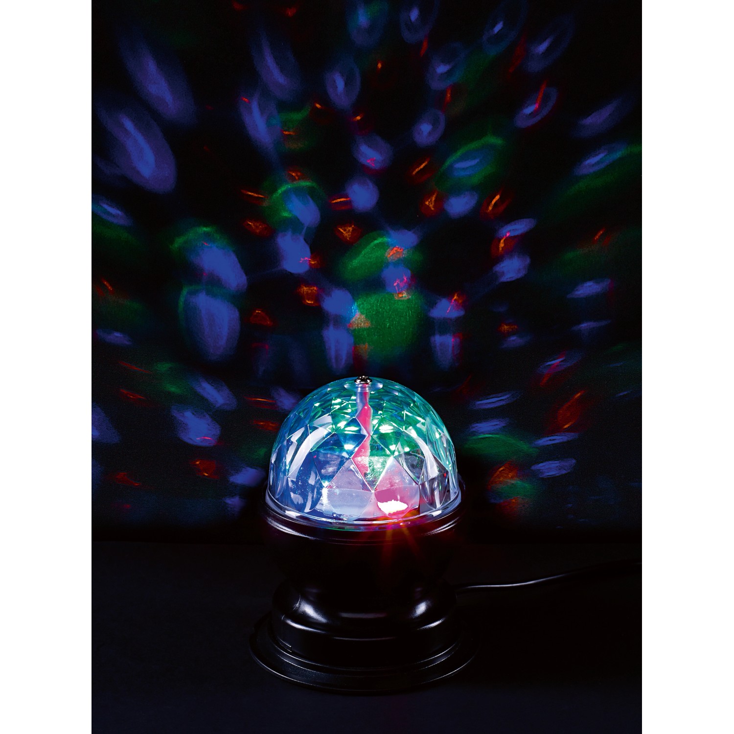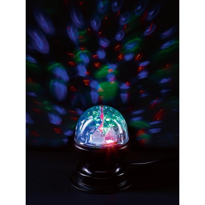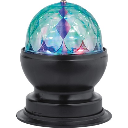 OBI Lighting stolná LED lampa Disco premení Vašu obývačku na pestré prostredie pre párty. Je vyrobená z kvalitného a ľahkého plastu. Jej rozmery sú 11 x 9 cm (V x Š). Svietidlo má integrovaný motorček, ktorý umožňuje otáčanie módnej disko gule. Funkcia striedania farieb zaisťuje, že svetlo svieti striedavo v červenej, zelenej a modrej farbe. Stolová lampa sa dodáva s napevno zabudovanými 3W LED svetelnými zdrojmi. Pripája sa pomocou zástrčky.