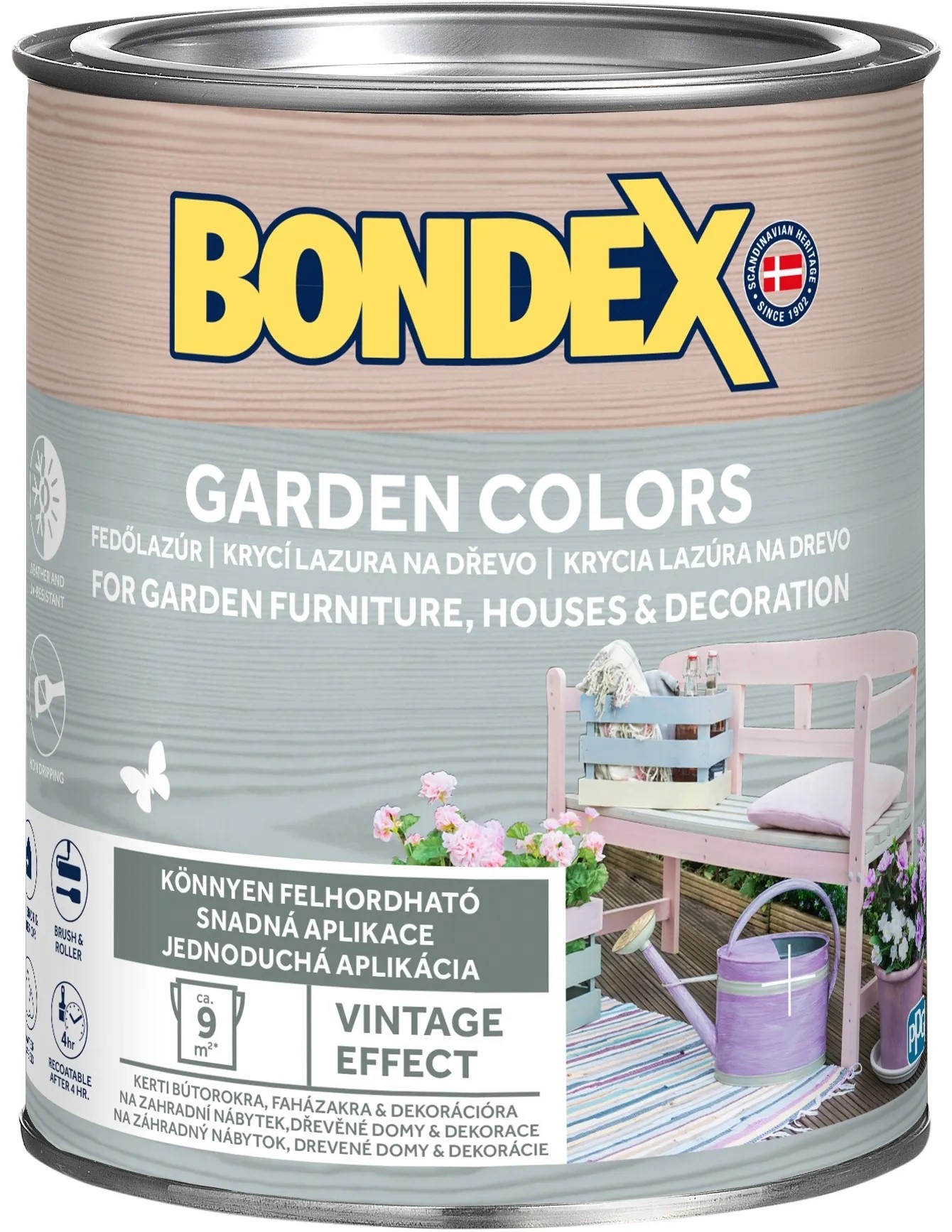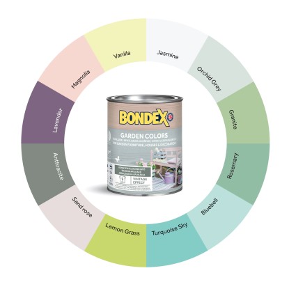 BONDEX GARDED COLORS je dekoratívna krycia lazúra na drevo na vodnej báze, do interiéru aj exteriéru. Vhodná na ošetrenie dreva, kovu, malých betónových a tehlových povrchov na dekoratívne účely. Pri aplikácii na drevený povrch zanecháva kresbu dreva a chráni ho pred škodlivými vplyvmi počasia a UV žiarením. Vďaka gélovej konzistencii sa ľahko nanáša a nesteká. Ideálna na záhradný nábytok, drevené domčeky a dekorácie.