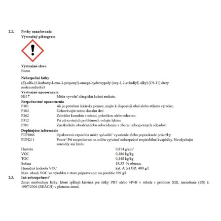 | Bez rozpúšťadiel: | Nie je bez rozpúšťadiel |