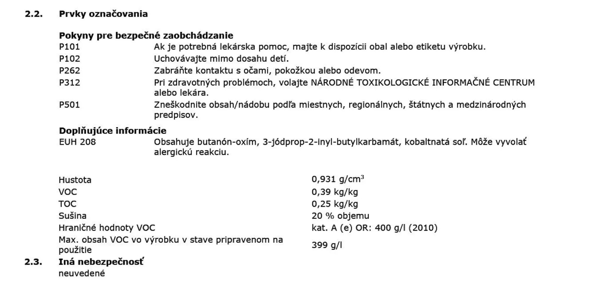 | Bez rozpúšťadiel: | Bez obsahu rozpúšťadiel |