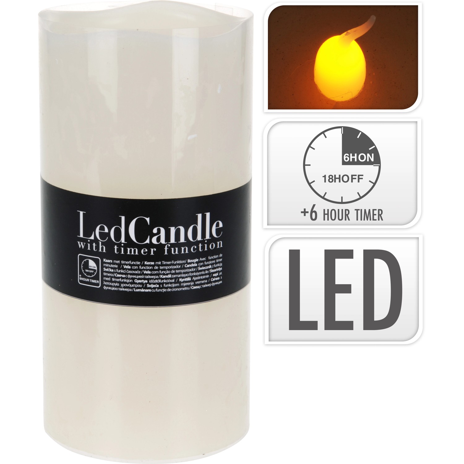 Koopman LED sviečka s časovačom plápolajúca, slonovina, pr. 10 x 20 cm