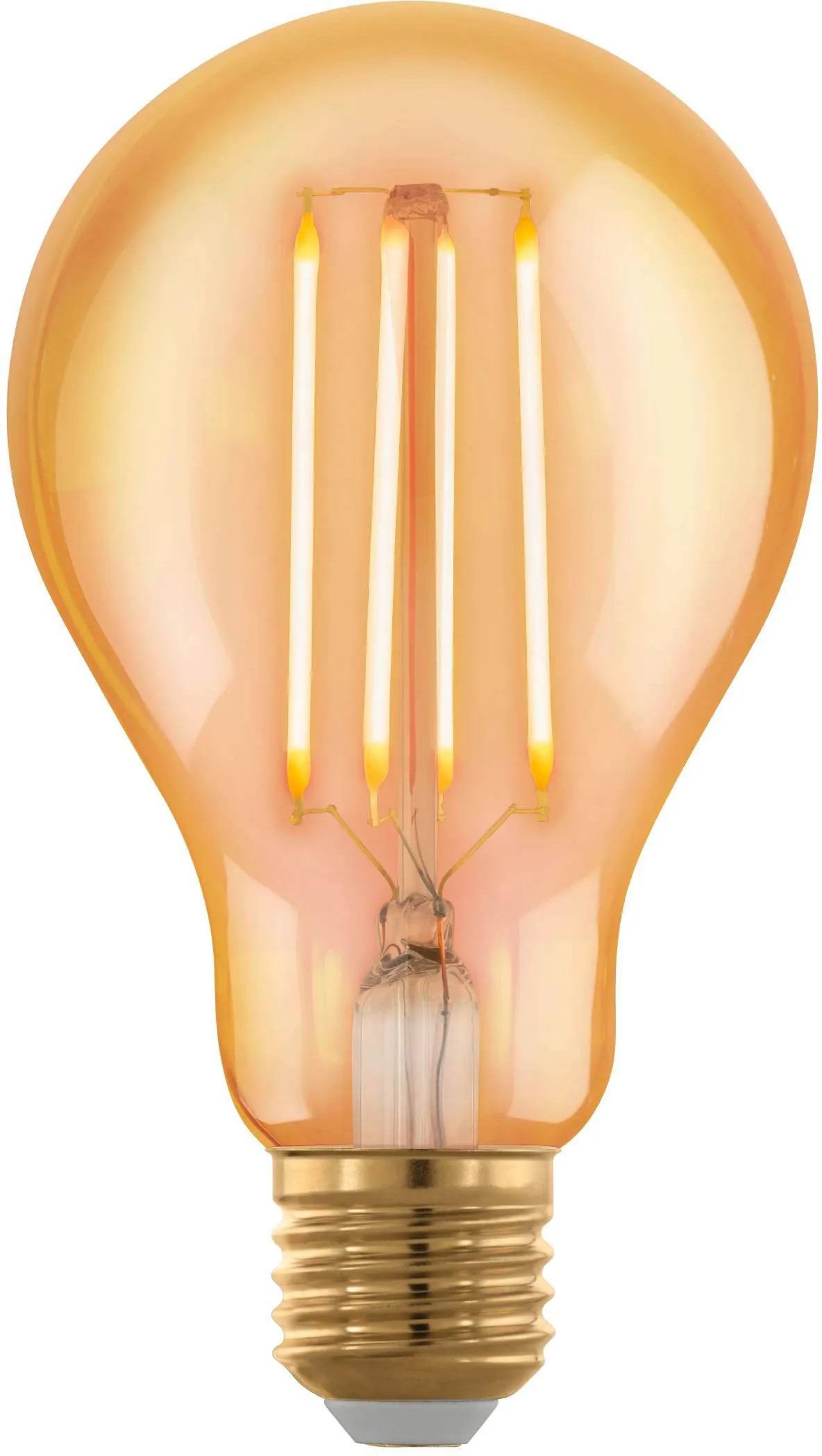 LED žiarovka Eglo s jantárovým tienidlom v tvare A75 je vybavená päticou E27 a vyžaruje svetlo s príkonom 4W, svetelným tokom 300 lm a teplotou chromatickosti 1700 Kelvin (extra teplá biela). LED žiarovka zo série s príznačným názvom Golden Age nás svojim svitom prenesie do starých dobrých zlatých časov. Veľmi teplý žltý odtieň (1700 Kelvinov) svetla zaleje miestnosť zlatistými tonami a vytvorí perfektnú retro náladu. Žiarovky Golden Age sú navyše stmievateľné.