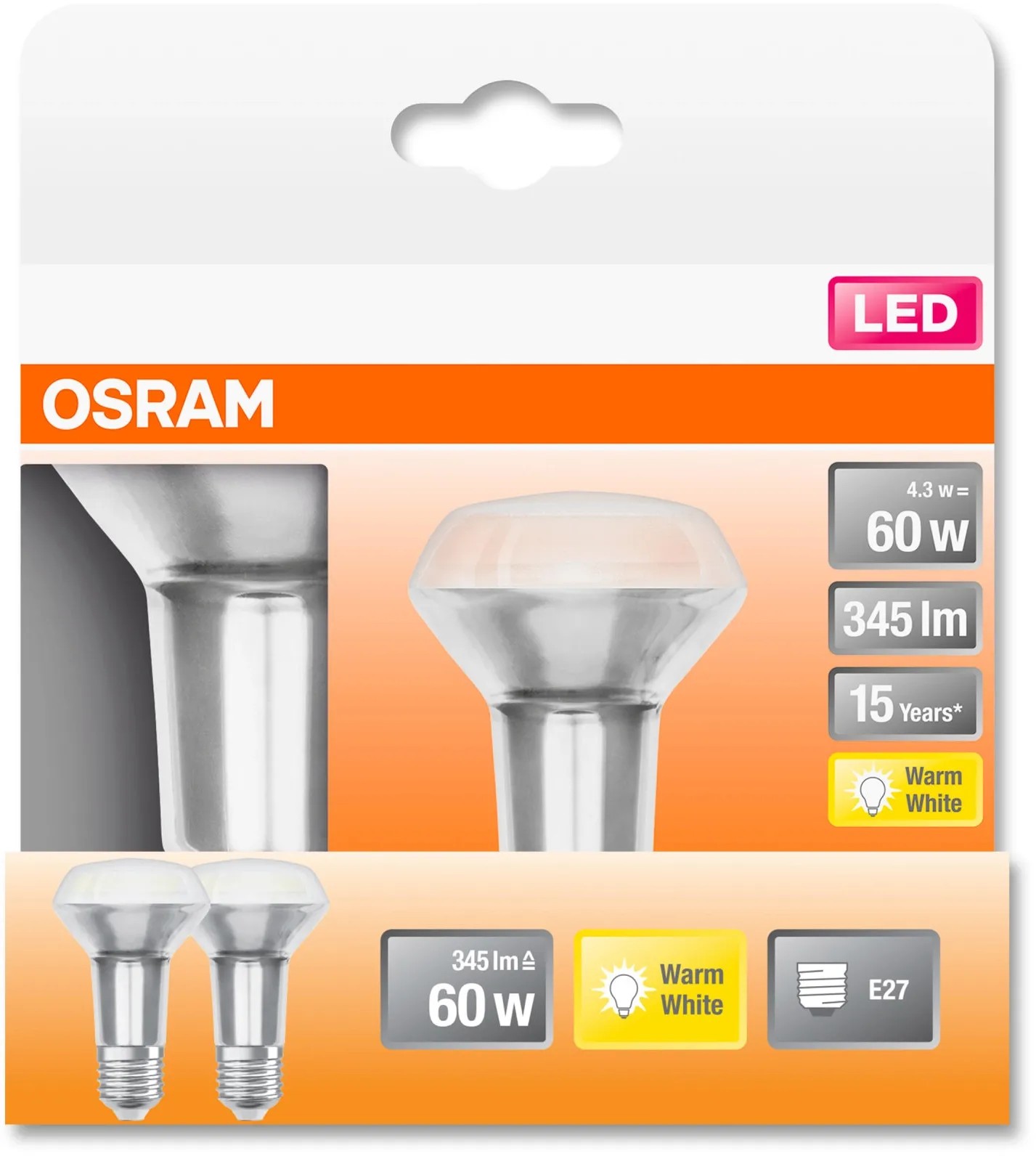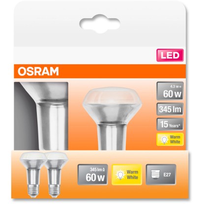 OSRAM LED reflektorová žiarovka Star R63, E27, 4,3W, 350 lm, 2700 K, opál., 2 ks