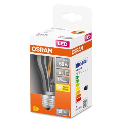 OSRAM LED žiarovka STAR 60, 6,5W/827 E27 s čírym sklom. Žiarovka STAR 60 je plnohodnotná náhrada za obyčajnú 60W žiarovku. Osram LED žiarovka STAR 60 má teplé biele svetlo 2700 K, svetelný tok 806 lm, životnosť 15 000 hodín a 100 000 spínacích cyklov.