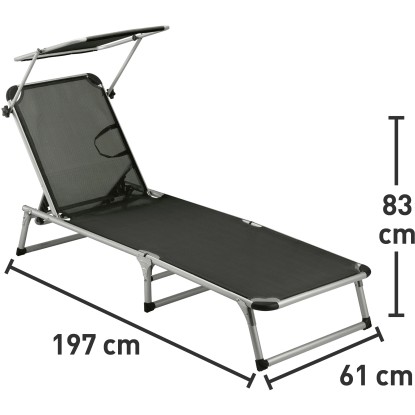 Na ležadle so strieškou v antracitovej farbe si skvele oddýchnete. Operadlo je prestaviteľné do viacerých polôh, strieška je plynule nastaviteľná.