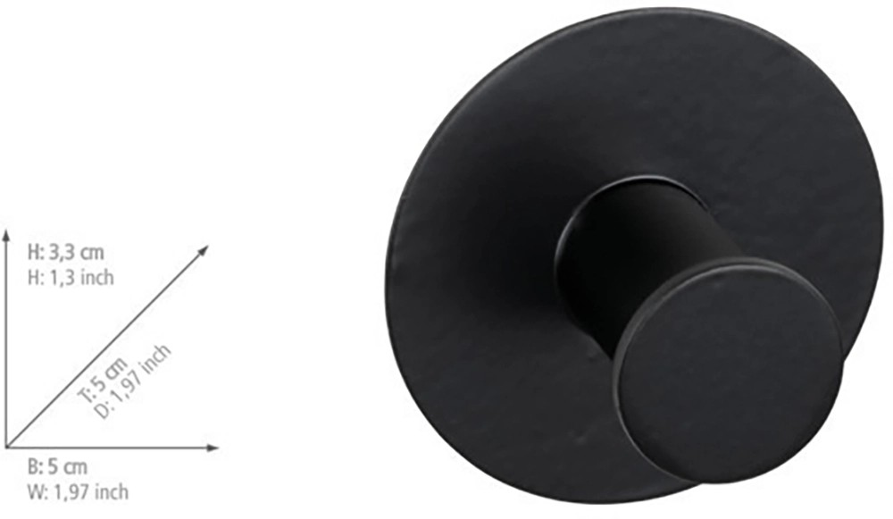 Wenko Samolepiaci okrúhly háčik Celano nerezový, čierna, pr. 5 x 3,3 cm