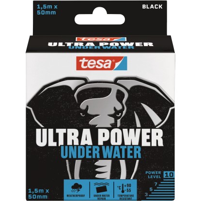 S opravnou páskou použiteľnou aj pod vodou tesa Ultra Power Under Water zvládnete všetko opraviť rýchlo a spoľahlivo - dokonca aj pod vodou. Slúži na opravy na suchom či mokrom povrchu, skvele drží a je vodotesná. Veľmi dobre sa prispôsobí akémukoľvek tvaru a objektu a hodí sa na opravu dier, škár, medzier a trhlín, napríklad aj na opravy unikajúcich bazénov či potrubí alebo na utesnenie rúrok. Vďaka vysokej odolnosti proti UV žiareniu a extrémnym teplotám sa páska hodí do náročných klimatických podmienok pri teplotách od -55 °C až do +93 °C.