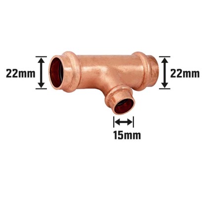 Lisovací T-diel s redukciou meď, pr. 22 mm x 15 mm x 22 mm, 1 ks
