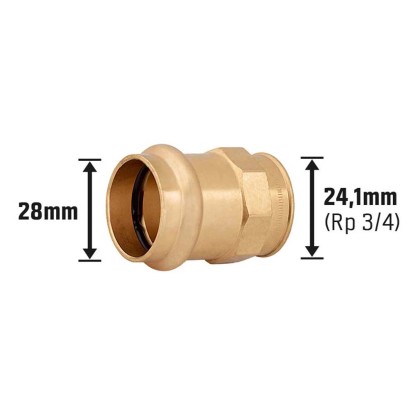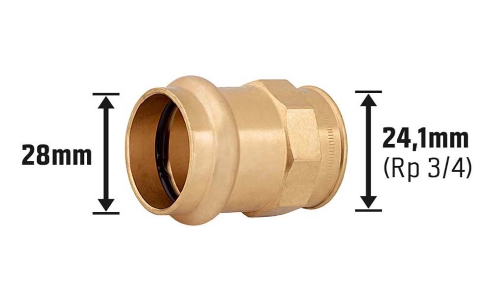 Lisovacia prechodová objímka sa používa na vzájomné spojenie dvoch rúr. Je vhodná ako spojovací diel na medené rúry. Objímka pozostáva z červenej mosadze. Spojovacie diely majú doťahovacie prevlečné matice, do ktorých sa bez problémov môžu vložiť rúry. Priemer objímky na jednej strane je 28 mm, na druhej strane je vnútorný závit s rozmerom 24,1 mm (Rp 3/4). Montáž sa vykonáva zalisovaním alebo zaskrutkovaním podľa strany. Spojovací diel overil úrad DVGW (Nemecký plynárenský a vodárenský zväz) a je schválený na inštaláciu pitnej vody.