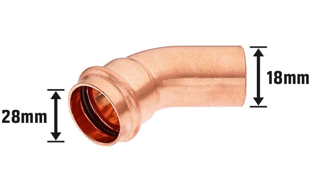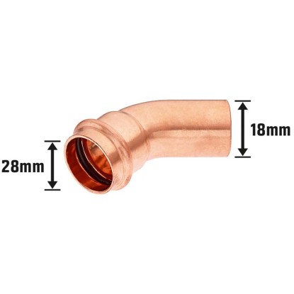 Lisovacie koleno typ IA meď 45°, pr. 28 mm x 18 mm, 1 ks