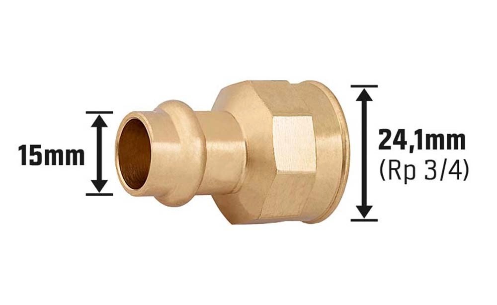 Robustná prechodová objímka slúži na spojenie rúr na inštaláciu vody a na vykurovacie a solárne inštalácie a vyznačuje sa jednoduchou a spoľahlivou montážou. Materiál tvarovky je zo stabilnej červenej mosadze s vysokým obsahom medi. Je odolná proti korózii vznikajúcej pod tlakom a mimoriadne odolná proti opotrebovaniu. Spojovací diel má priechodný tvar na zabezpečenie priameho prechodu rúr. Zafixuje sa zalisovaním, čím vznikne trvalý spoj, ktorý sa už neuvoľní pri tlakovom zaťažení ani pri zmene teploty. Montáž prebieha rýchlo a bez problémov. Lisovací spoj má priemer 15 mm x 24,1 mm (Rp 3/4) a je vhodný na spojenie medených rúr. Prechodová objímka je taktiež schválená na inštaláciu pitnej vody.