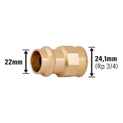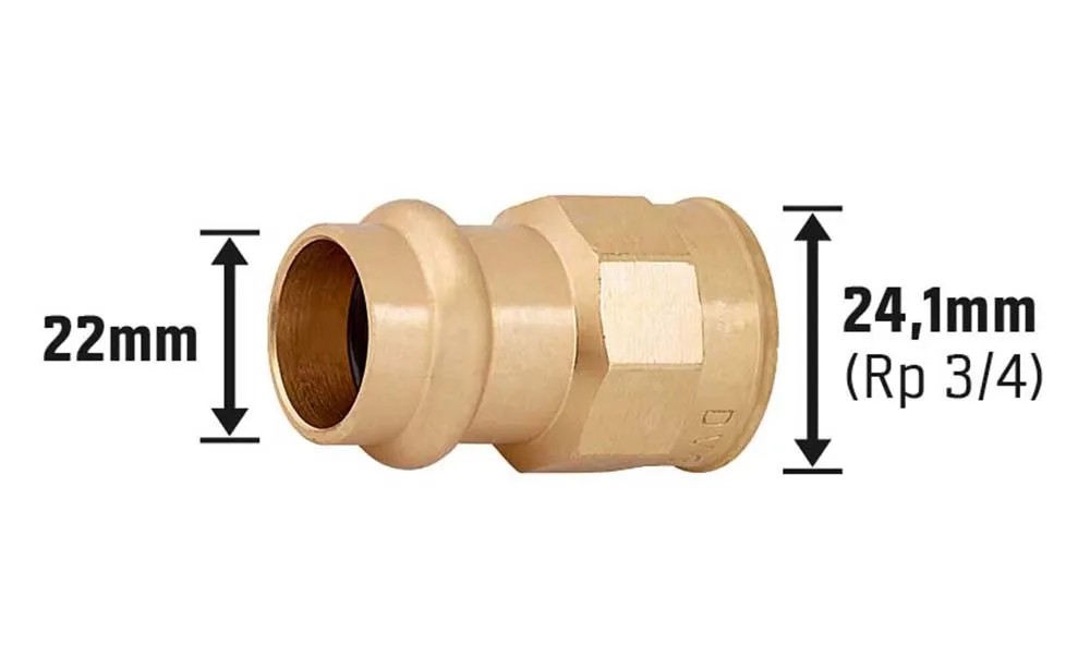 Robustná prechodová objímka slúži na spojenie rúr na inštaláciu vody a na vykurovacie a solárne inštalácie a vyznačuje sa jednoduchou a spoľahlivou montážou. Materiál tvarovky je zo stabilnej červenej mosadze s vysokým obsahom medi. Je odolná proti korózii vznikajúcej pod tlakom a mimoriadne odolná proti opotrebovaniu. Spojovací diel má priechodný tvar na zabezpečenie priameho prechodu rúr. Zafixuje sa zalisovaním, čím vznikne trvalý spoj, ktorý sa už neuvoľní pri tlakovom zaťažení ani pri zmene teploty. Montáž prebieha rýchlo a bez problémov. Lisovací spoj má priemer 22 mm x 24,1 mm (Rp 3/4) a je vhodný na spojenie medených rúr. Prechodová objímka je taktiež schválená na inštaláciu pitnej vody.