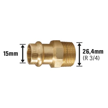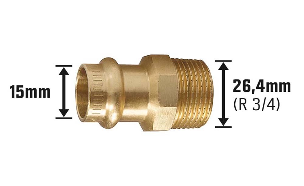 Prechodová vsuvka slúži na spojenie dvoch rúr. Umožňuje rýchlu montáž a používa sa na inštaláciu vody, vo vykurovacích a solárnych inštaláciách. Tvarovka pozostáva z červenej mosadze s vysokým obsahom medi. Vďaka tomu je odolná proti opotrebovaniu a korózii vznikajúcej pod tlakom. Spojovací diel má rovný tvar na priame pripojenie v tom istom smere. Vďaka metóde zalisovania je montáž rýchla a jednoduchá. Vytvorí sa tak rúrkový spoj, ktorý sa opäť nerozpojí pri zmene teploty alebo v dôsledku tlakového zaťaženia. Lisovacia vsuvka má priemer 15 mm x 26,4 mm (R 3/4). Je vhodná na spojenie medených rúr, ktoré sa používajú prevažne v oblasti vykurovacích inštalácií. Okrem toho je vhodná na inštaláciu pitnej vody.
