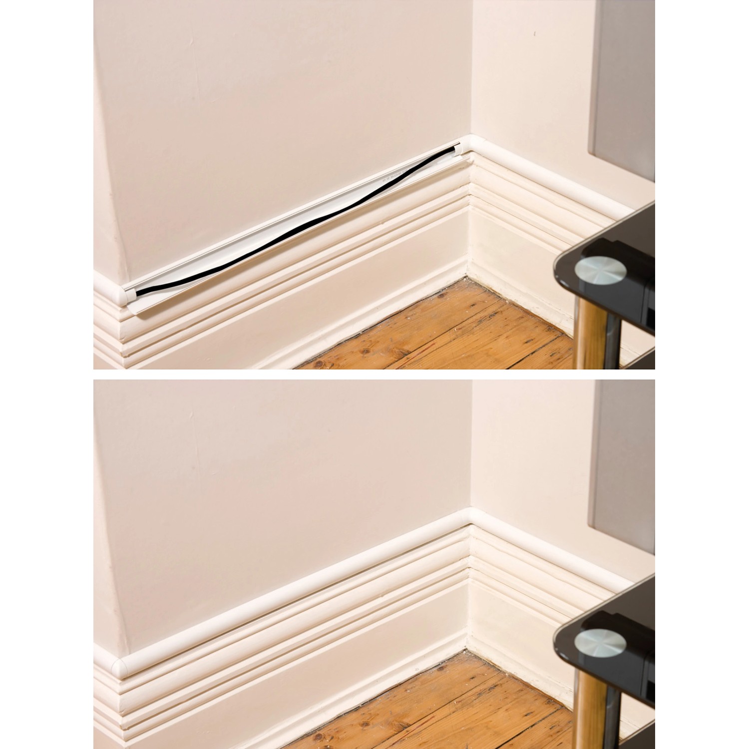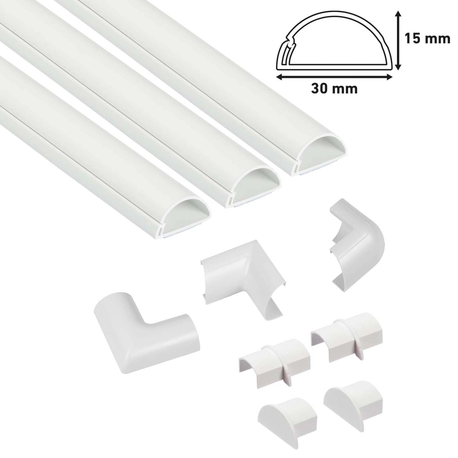 10dielna D-Line sada káblových kanálov s rozmermi 30 x 15 mm obsahuje 3x 1 m káblový kanál z tvrdého PVC vysoko odolného voči úderu a praktické spojovacie prvky a rohy - teda všetko, aby ste rýchlo a ľahko schovali káble. Vďaka polkruhovému tvaru ladia káblové kanály harmonicky so soklovými lištami a diskrétne a moderne zakrývajú horizontálne aj vertikálne káble. Integrovaný lepiaci prúžok na zadnej strane zaisťuje jednoduchú montáž a stabilné upevnenie. V prípade potreby ich možno navyše prevŕtať a upevniť pomocou skrutky. Okrem toho je možné kanály, ak si to prajete, pretierať alebo nalakovať a ľahko skrátiť. Vďaka špeciálnemu tvaru s vekom, závesom a zaklapávacím uzáverom - všetko z jedného kusu - ponúkajú D-Line kanály veľmi ľahkú manipuláciu. Zaklapávací uzáver je možné ľahko znovu otvoriť a zatvoriť, takže môžete kábel pridať alebo vybrať aj dodatočne. Kanály sú nehorľavé a vhodné výhradne na použitie v interiéroch. Tiež praktické príslušenstvo, ako sú spojovacie prvky, koncové krytky atď., sa veľmi ľahko inštaluje. Stačí nasadiť nástavce, umiestniť káblový kanál a je hotovo.