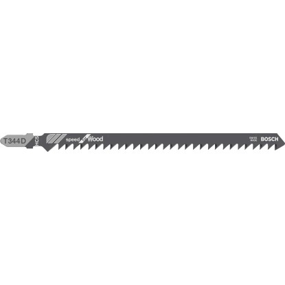 Pílový list so striedavým ozubením T 344 D Speed for Wood umožňuje rýchle priame rezy do dreva. List z ocele s vysokým obsahom uhlíka je vhodný na rezanie do mäkkého dreva a neabrazívnych materiálov. Zuby s veľkým rozstupom (4 mm) a dlhou dĺžkou 152 mm režú drevené materiály s hrúbkou až do 100 mm. Kompatibilný so všetkými pílami s upínaním do T.