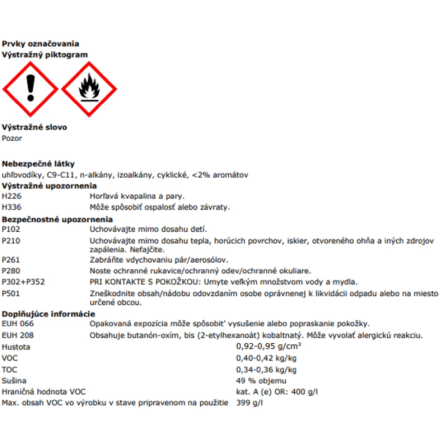 | Typ náteru: | Bezfarebné |