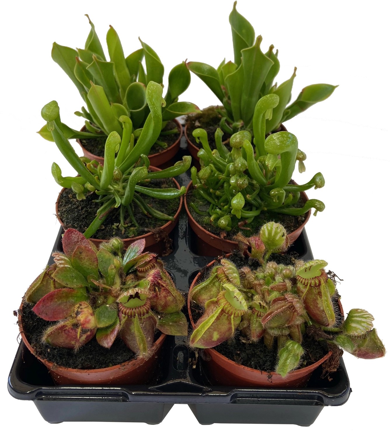 Mix mäsožravých rastlín tvoria vzácne a žiadané druhy ako Cephalotus follicularis, Heliamphora hybride, Darlingtonia californica a Drosera Paradoxa/Adelae. Každá rastlina v tomto mixe zaujme svojim jedinečným prispôsobením a fascinujúcimi stratégiami na prežitie. V závislosti od dostupnosti a ročného obdobia rastlín získate starostlivo zostavený výber tejto vzácnej krásy.